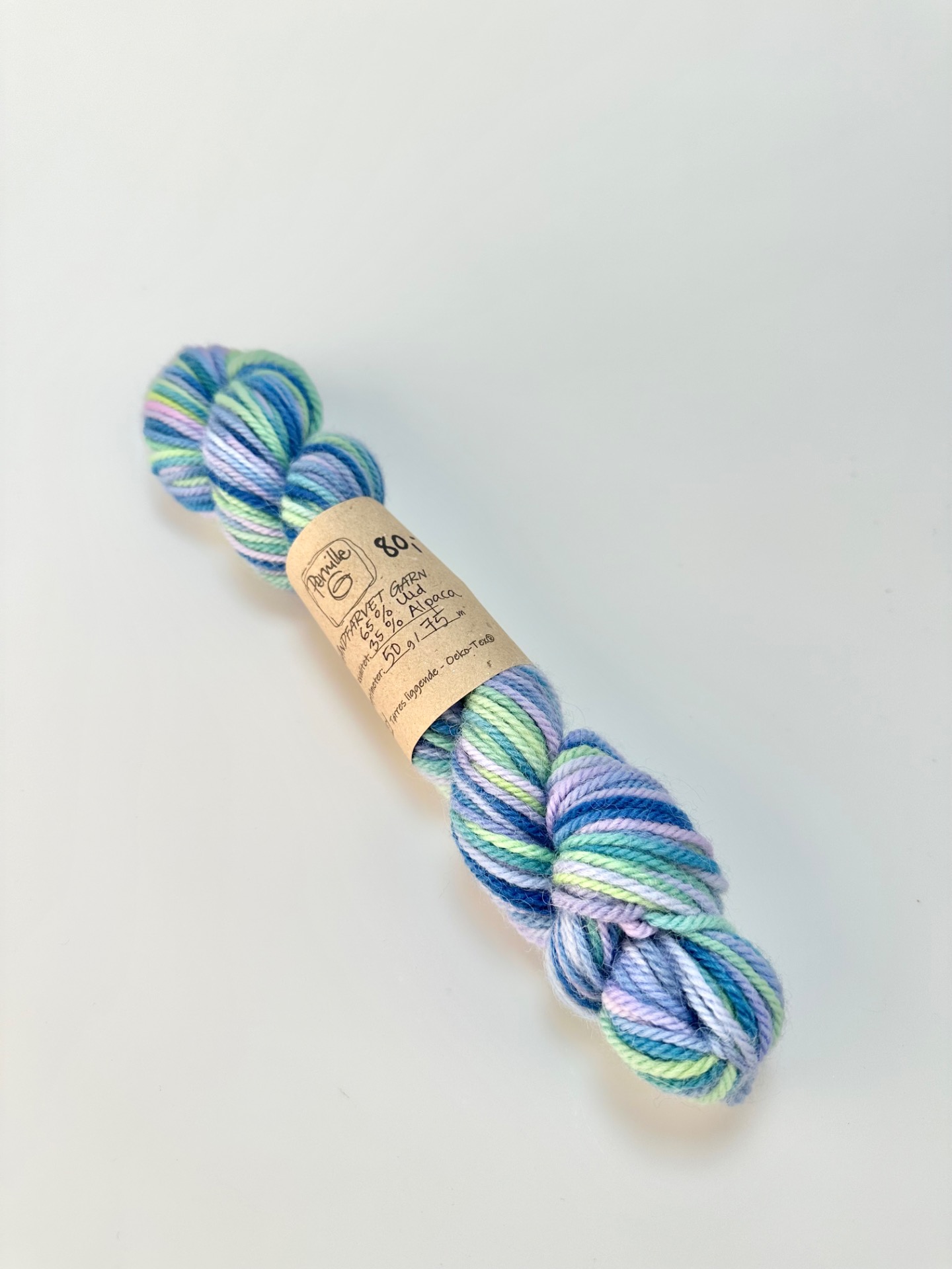 Vi fører også håndfarvet garn, i flere forskellige garntyper. Vi fører både de mere dæmpede farver, men også i de stærke pang-farver.